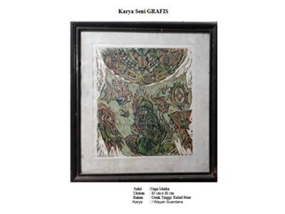 Judul karya NAGA MURKA ,.Karya ini karya seni Grafis, dengan Teknik Cetak Tinggi/ relief print , di Cetak diatas kertas dengan ukuran 85 c m X 80 c m ide c iptaan dari kisah Mahabrata, tat kala Pendawa dalam masa pembuangan di hutan.